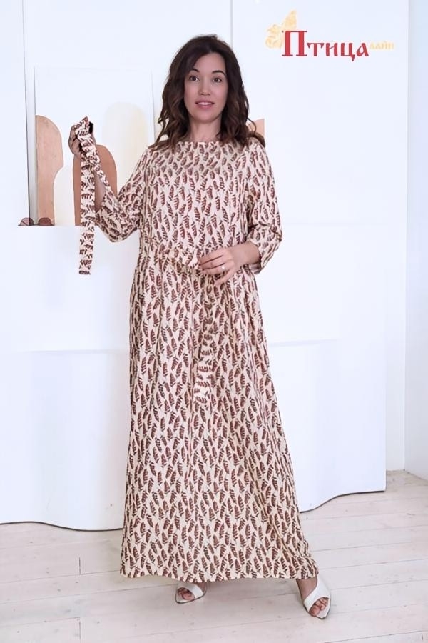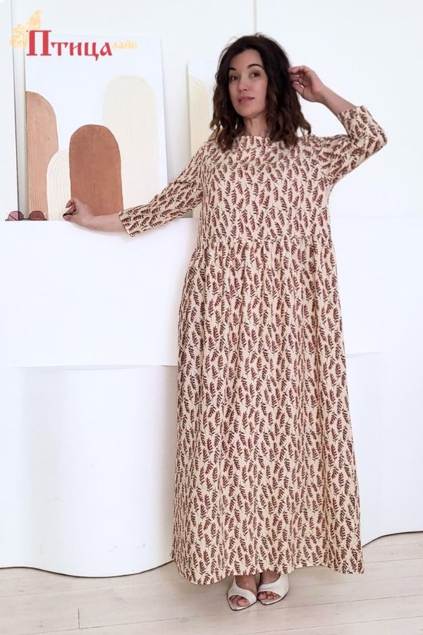Платье женское, отрезное, с завышенной линией талии. Юбка широкая, прямая. Равномерная сборка по линии талии украшает этот лаконичный образ. Рукав втачной с углубленной проймой, что придает ширину рукаву. Ид...