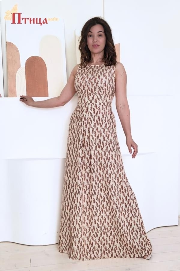 Сарафан "Первый луч" отрезной по талии, линия талии завышенная. Юбка расклешенная к низу, по полочке встречная складка. Рельефы на полочке и спинке. Для удобства по среднему шву на спинке застежка на «молнию». ...
