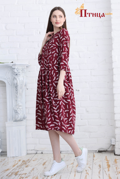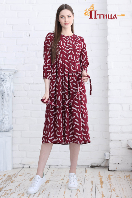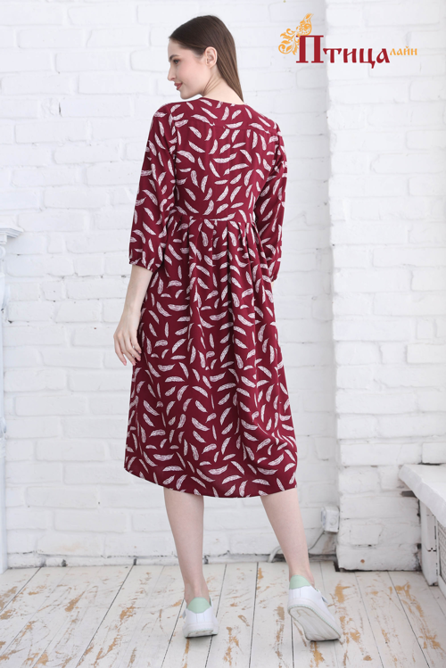 Элегантное женское платье, идеально подходящее каждой, модель с завышенной линией талии. Юбка широкая с со складками по центу изделия, по передней и задней части юбки. Рукав втачной, широкий, длиной 3/4 на рези...
