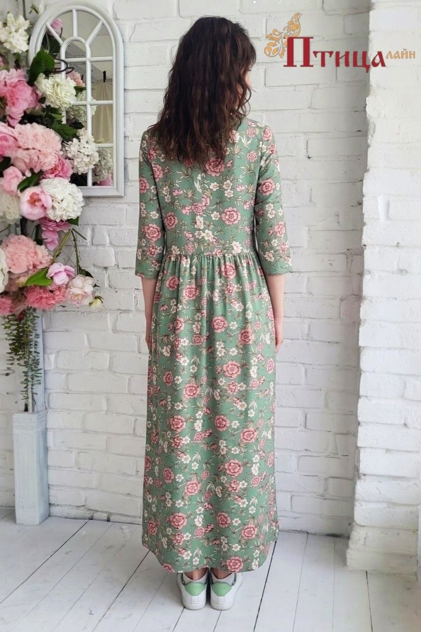Платье женское отрезное с завышенной линией талии. Юбка широкая, прямая. Равномерная сборка по линии талии украшает данный лаконичный образ. Рукав втачной с углубленной проймой, что добавляет ширину рукава. ...
