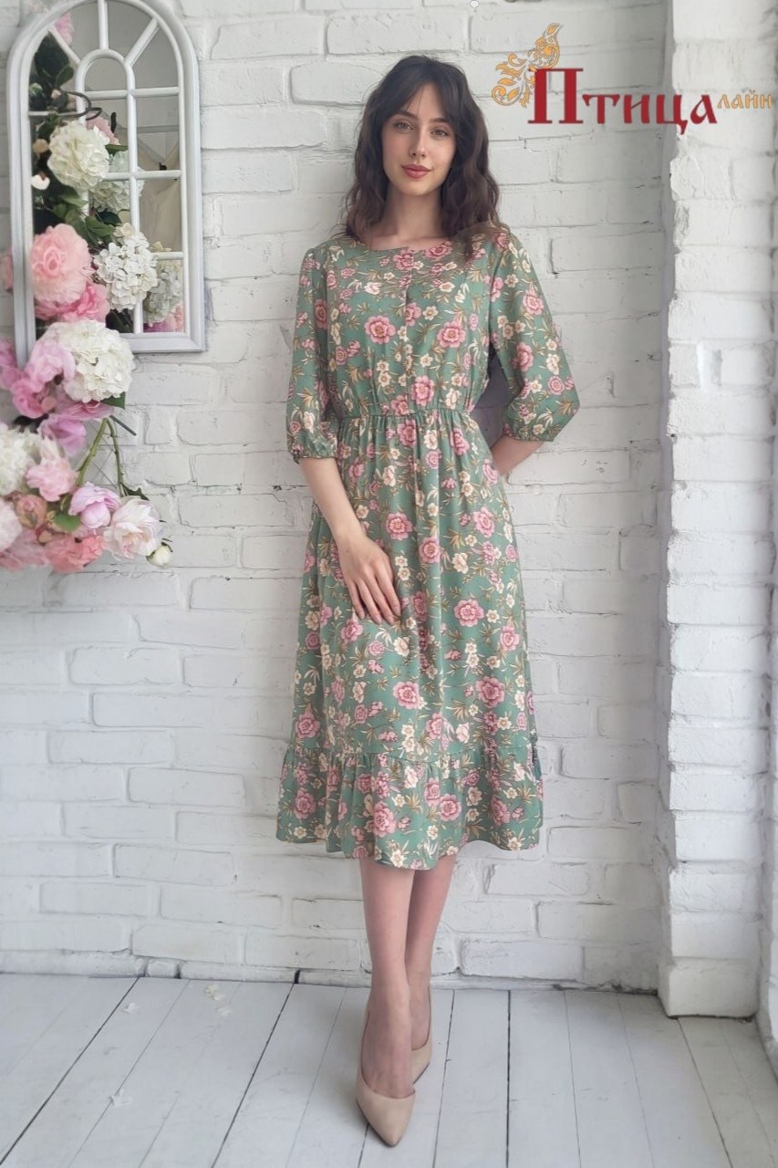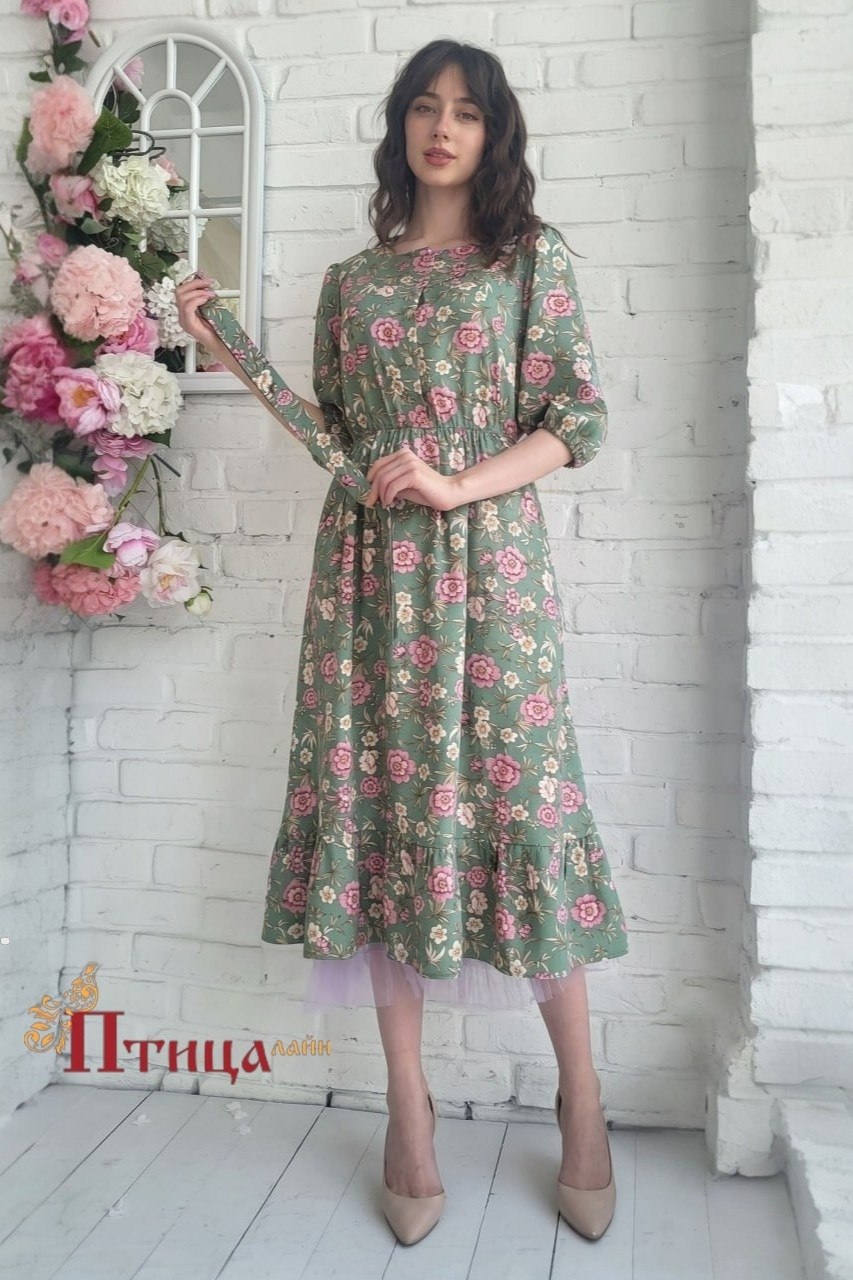 Великолепное платье выполненное с отрезной линией талии собранной на резинку, полуприлегающего силуэта. Юбка с боковыми карманами и сборкой по линии талии. Удобство и комфорт движения обеспечивает хорошее раск...