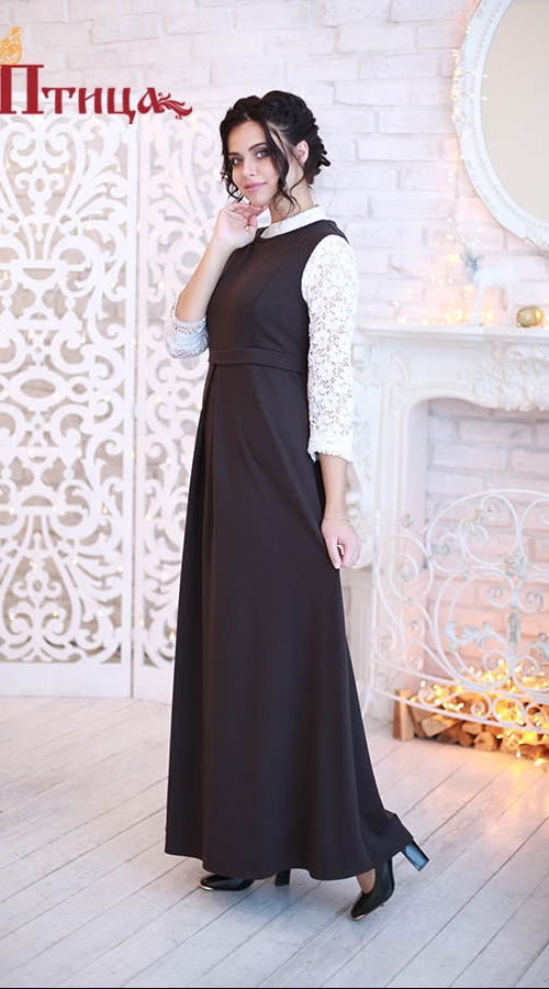Женственный сарафан полуприлегающего силуэта, с отрезной линией талии. Завышенная линия талии, подчеркнутая поясочком, а так же юбка расклешенная к низу, с встречной складкой создает женственный романтичный обр...