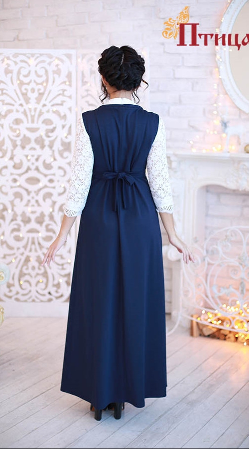 Женственный сарафан полуприлегающего силуэта, с отрезной линией талии. Завышенная линия талии, подчеркнутая поясочком, а так же юбка расклешенная к низу, с встречной складкой создает женственный романтичный обр...