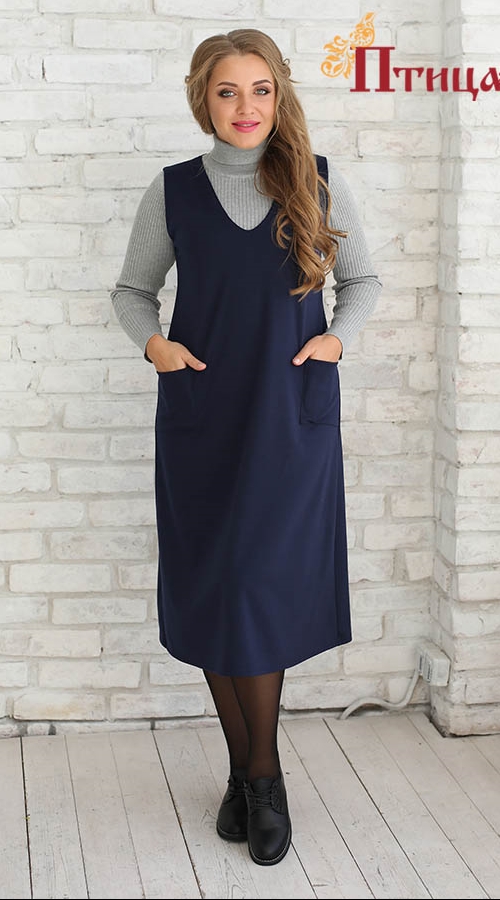 Сарафан трапециевидного силуэта, с настрочными карманами, всегда удобными для повседневной носки. Лаконичный, удобный, прекрасно сочетается с романтичными блузами, удобными водолазками. Длинна изделия хорошо см...