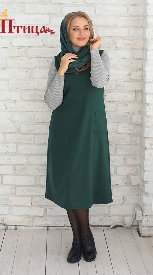 Сарафан трапециевидного силуэта, с настрочными карманами, всегда удобными для повседневной носки. Лаконичный, удобный, прекрасно сочетается с романтичными блузами, удобными водолазками. Длинна изделия хорошо см...