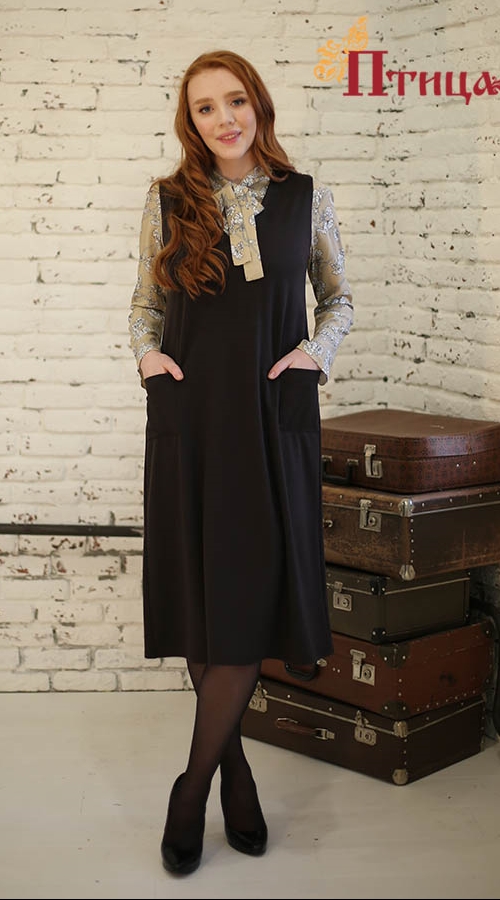 Сарафан трапециевидного силуэта, с настрочными карманами, всегда удобными для повседневной носки. Лаконичный, удобный, прекрасно сочетается с романтичными блузами, удобными водолазками. Длинна изделия хорошо смотрится как с обувью на низком каблуке, так и на высоком. Данный образ подходит как для офисной работы, так и для ежедневных прогулок. Данная модель подходит на любой тип фигуры. Глубокий вырез горловины, в комбинации с водлазкой, с секретом для кормления, станет прекрасным сочетанием для молодых мамочек.