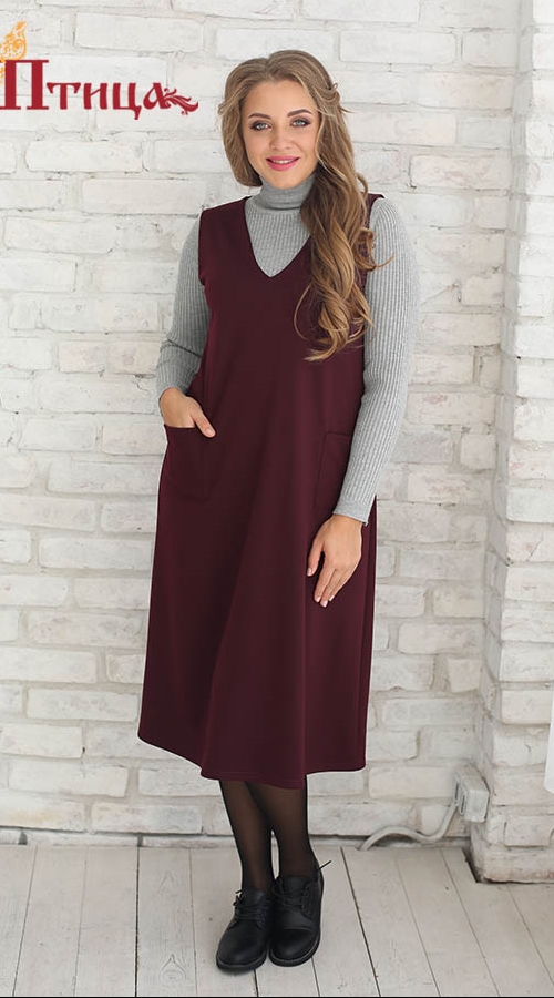 Сарафан трапециевидного силуэта, с настрочными карманами, всегда удобными для повседневной носки. Лаконичный, удобный, прекрасно сочетается с романтичными блузами, удобными водолазками. Длинна изделия хорошо см...