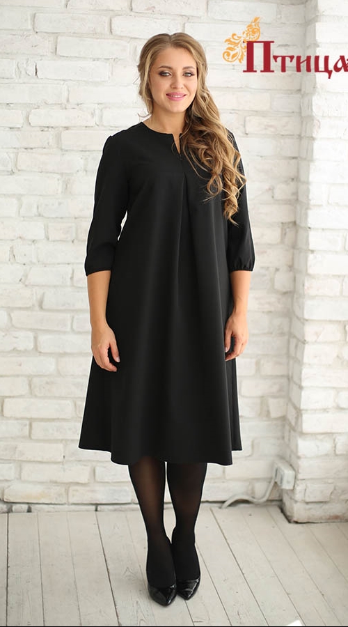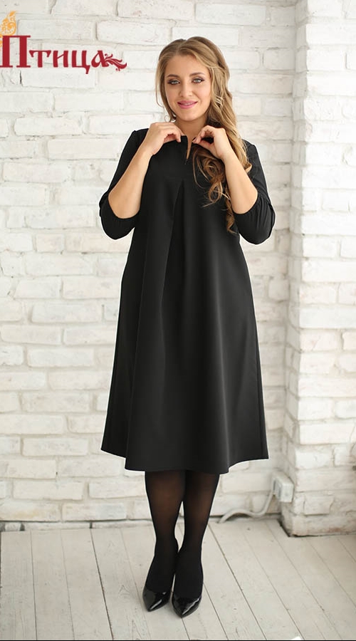 Платье женское трапециевидного силуэта. Рукав втачной на резинке. Платье идеально скрывающего все особенности фигуры. По центру полочки глубокая складка, и застежка на потайную молнию. Вырез горловины округлый....