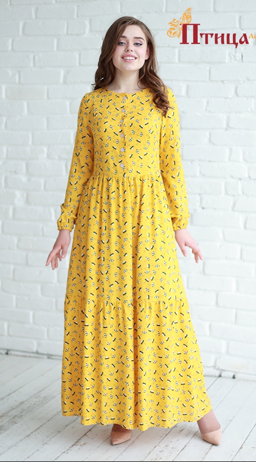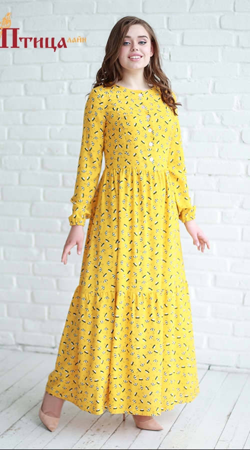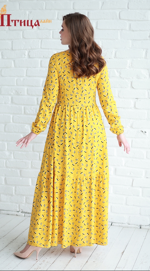 Платье женское отрезное по талии, получприлегающего силуэта. Прекрасную посадку обеспечивают рельефы выходящие из плечевого шва. Юбка расширенная к низу с легкой сборкой по талии, в два яруса на сборку. Рукав ...