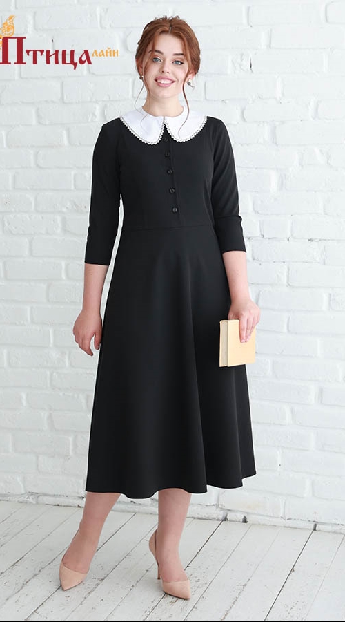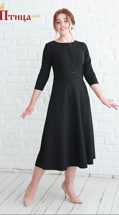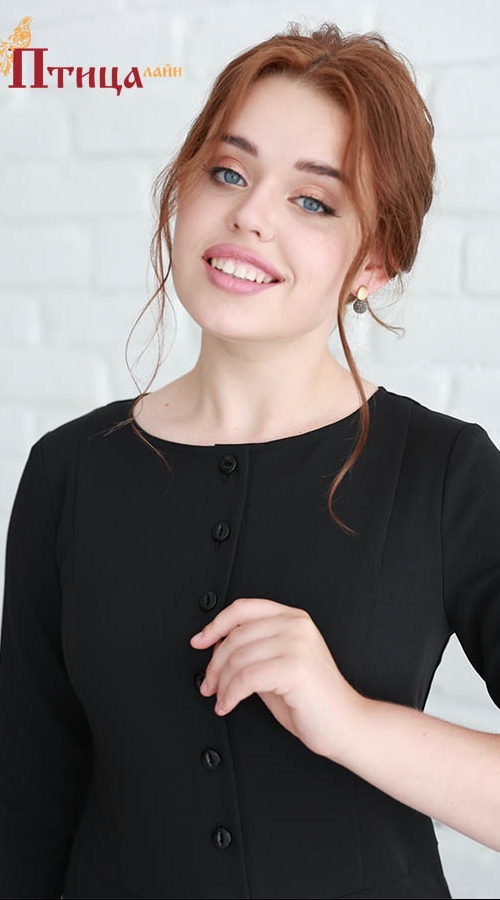Романтичный образ: платье приталенного силуэта, с отрезной линией талии и центральной застежкой на пуговицы и петли. Женственный силуэт достигается за счет рельефов по полочки и спинки, рукав зауженный длиной 3...