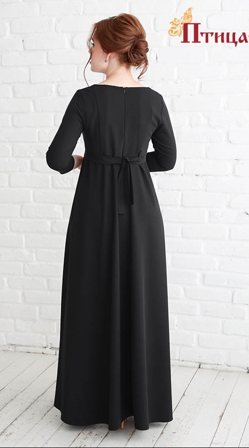 Платье "Муза" отрезное с завышенной линией талии, полуприлегающего силуэта, завышенная линия талии и тонкий втачной поясок, который легко корректирует приталенность модели, подчеркивает женственный силуэт, горловина аккуратная лодочка. Юбка полусолнце с боковыми швами - женственная и очень красивая, в юбке при движении образуется красивая волна по подолу, в ней очень хочется кружиться, наблюдая за тем, как красиво "танцует платье". Рукав втачной прямой длиной 3/4, застежка на «молнию» по спинке.