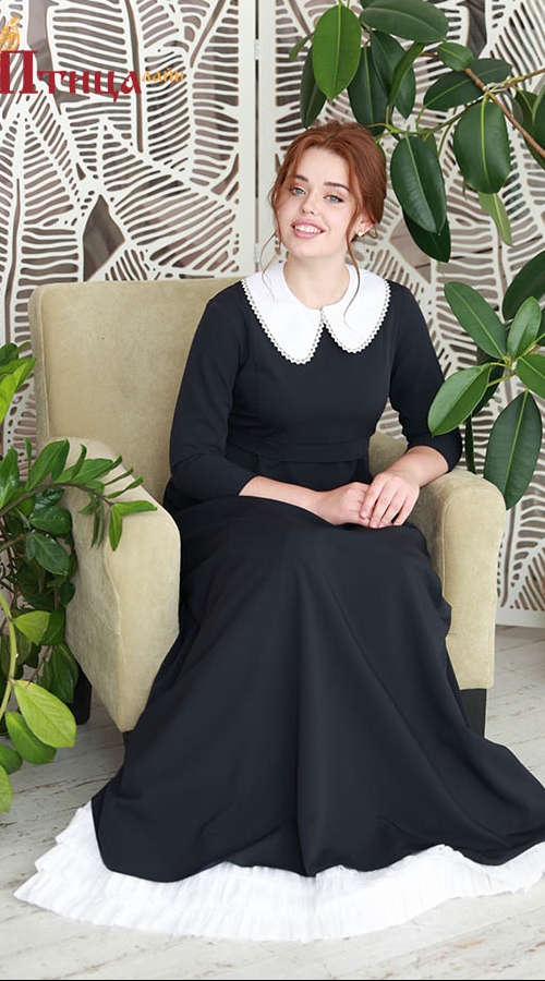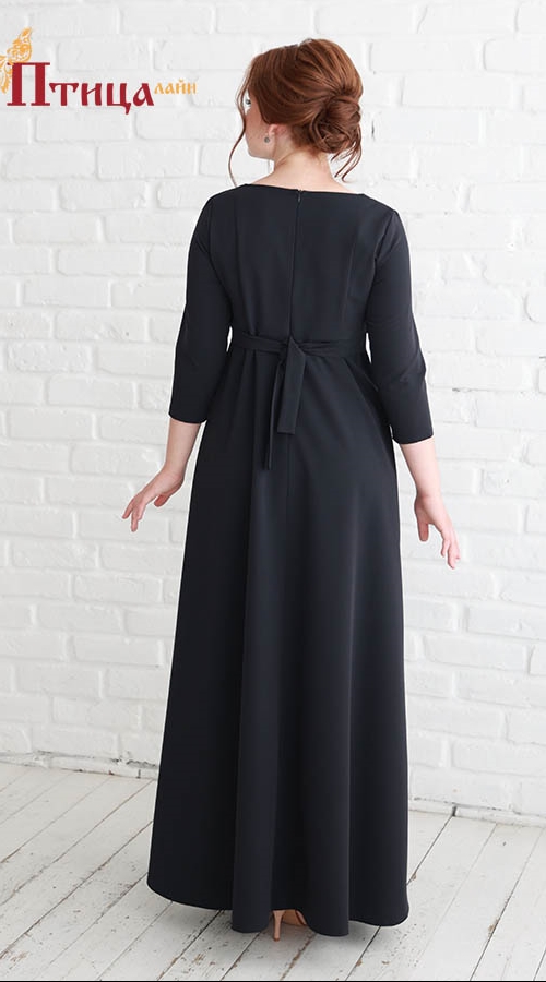 Платье "Муза" отрезное с завышенной линией талии, полуприлегающего силуэта, завышенная линия талии и тонкий втачной поясок, который легко корректирует приталенность модели, подчеркивает женственный силуэт, горловина аккуратная лодочка. Юбка полусолнце с боковыми швами - женственная и очень красивая, в юбке при движении образуется красивая волна по подолу, в ней очень хочется кружиться, наблюдая за тем, как красиво "танцует платье". Рукав втачной прямой длиной 3/4, застежка на «молнию» по спинке.