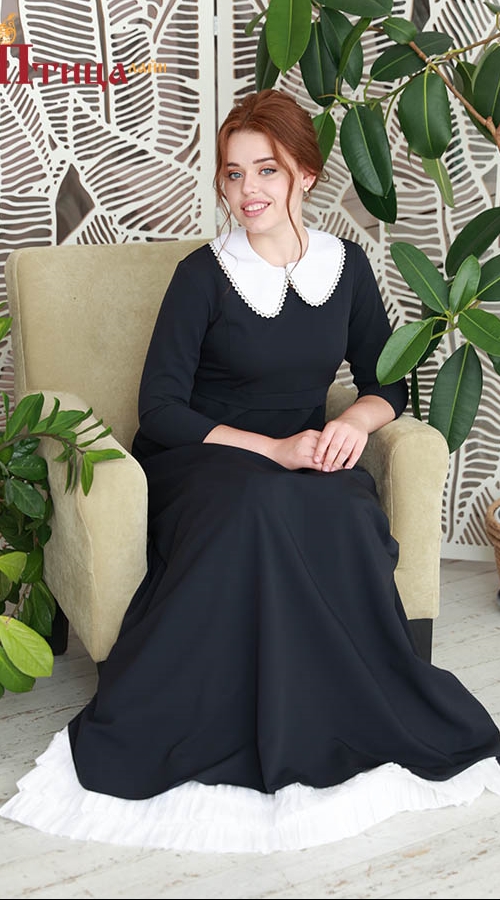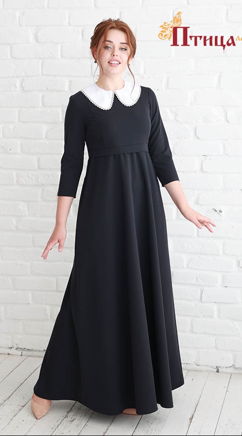 Платье "Муза" отрезное с завышенной линией талии, полуприлегающего силуэта, завышенная линия талии и тонкий втачной поясок, который легко корректирует приталенность модели, подчеркивает женственный силуэт, горловина аккуратная лодочка. Юбка полусолнце с боковыми швами - женственная и очень красивая, в юбке при движении образуется красивая волна по подолу, в ней очень хочется кружиться, наблюдая за тем, как красиво "танцует платье". Рукав втачной прямой длиной 3/4, застежка на «молнию» по спинке.