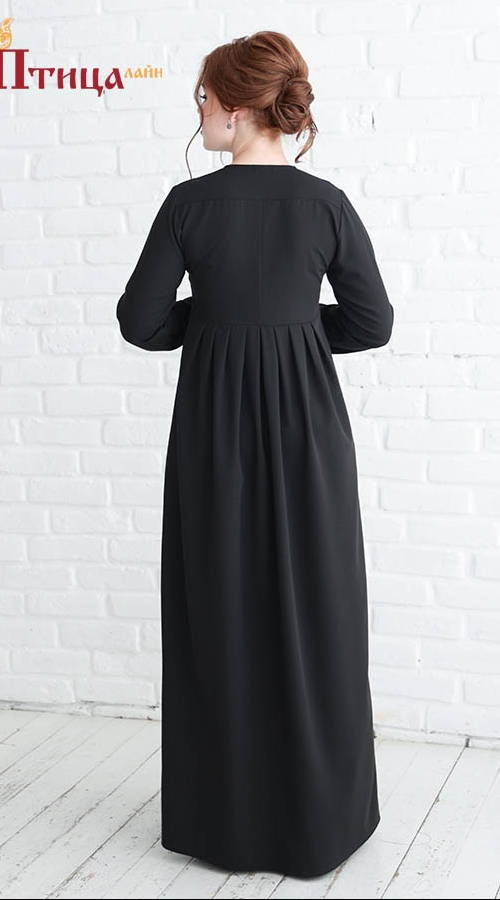атье женское отрезное по талии, линия талии завышенная. Юбка широкая с со складками по центу изделия, по передней и задней части юбки, что создает дополнительную свободу в области талии и бедер. Рукав втачной, ...