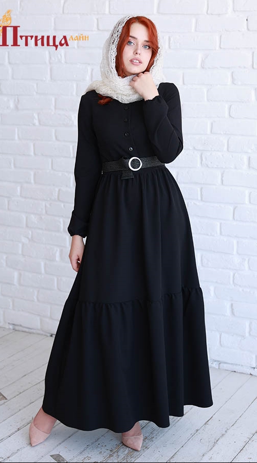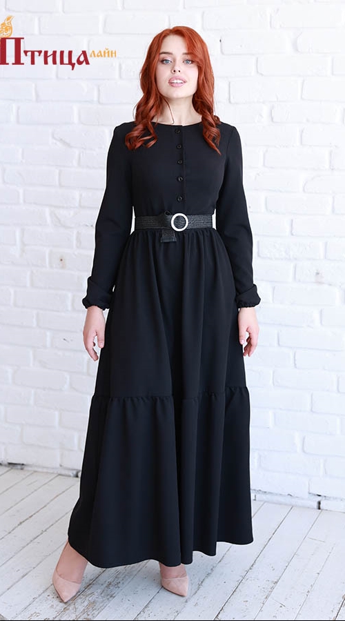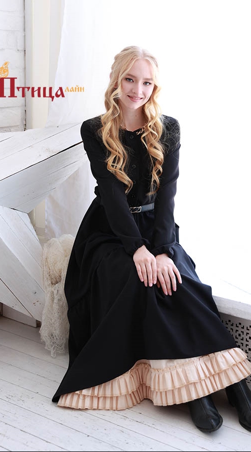 Платье женское отрезное по талии, полуприлегающего силуэта. Юбка расширенная к низу с легкой сборкой по талии, в два яруса на сборку. Рукав втачной, расширенный к низу на резиночке. Для удобства по среднему шву...