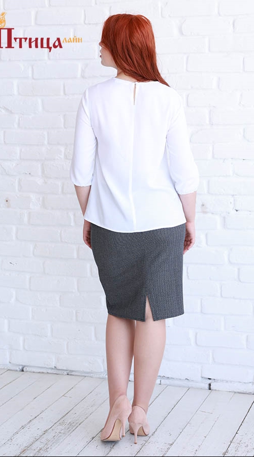 Туника трапециевидного силуэта идеальная для каждого типа фигуры. Рукав втачной, длинна рукава 3/4, прямой не зауженный. Застежка по спинке на пуговицу. Данная туника прекрасно подходит на выход и на каждый де...