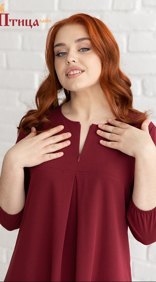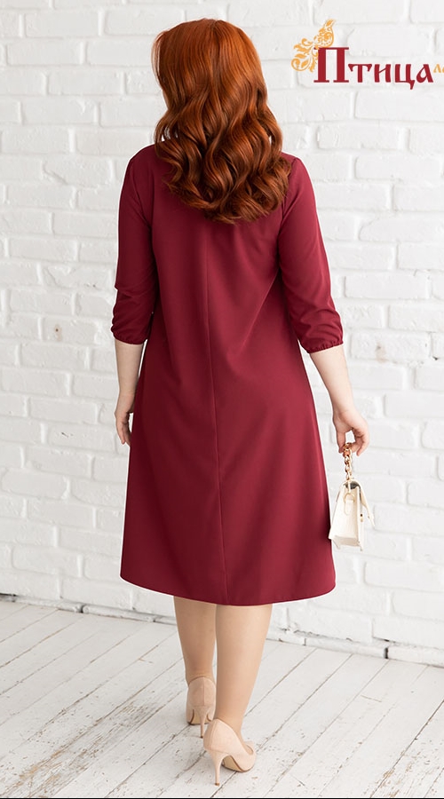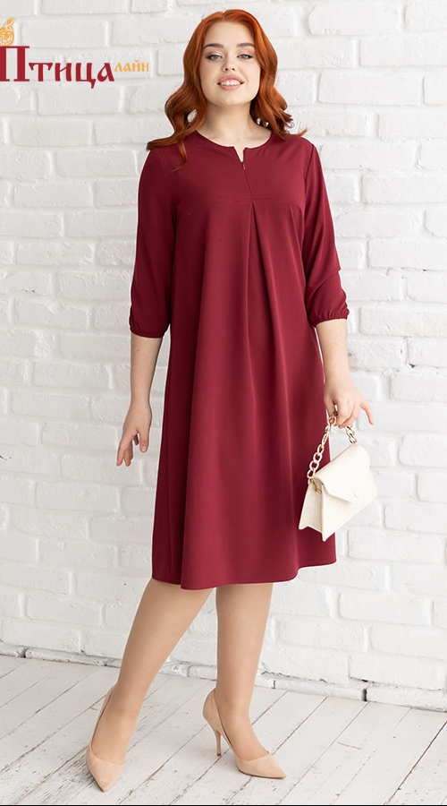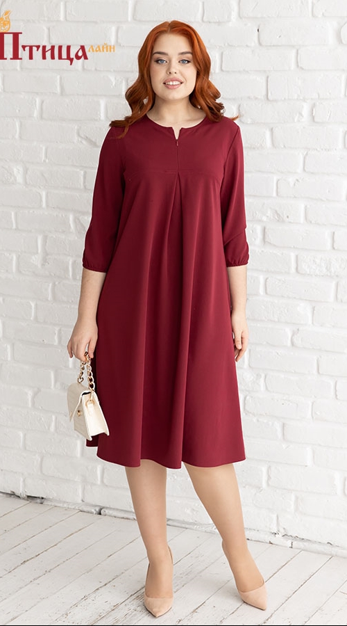 Платье женское трапециевидного силуэта. Рукав втачной на резинке. Платье идеально скрывающего все особенности фигуры. По центру полочки глубокая складка, и застежка на потайную молнию. Вырез горловины округлый....
