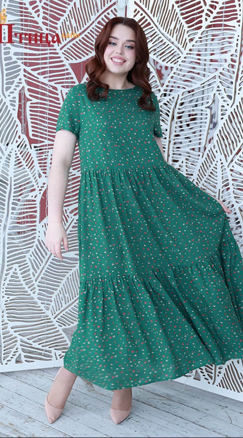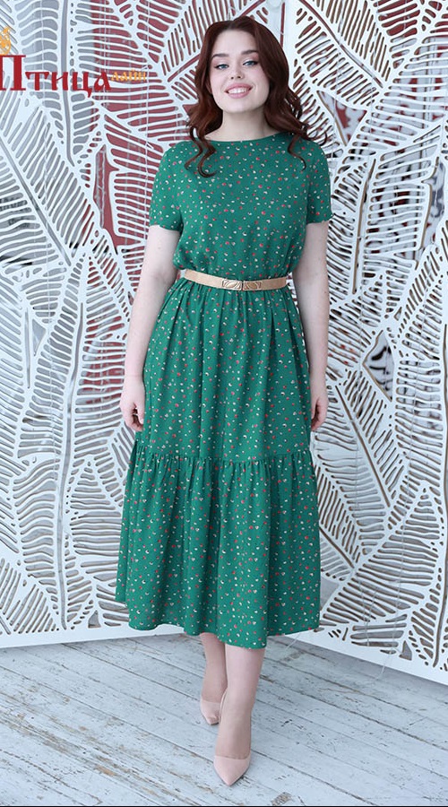 Платье женское отрезное с завышенной линией талии. Юбка широкая, прямая. Равномерная сборка по линии талии украшает данный лаконичный образ. Рукав втачной с углубленной проймой, что добавлет ширину рукава. И...