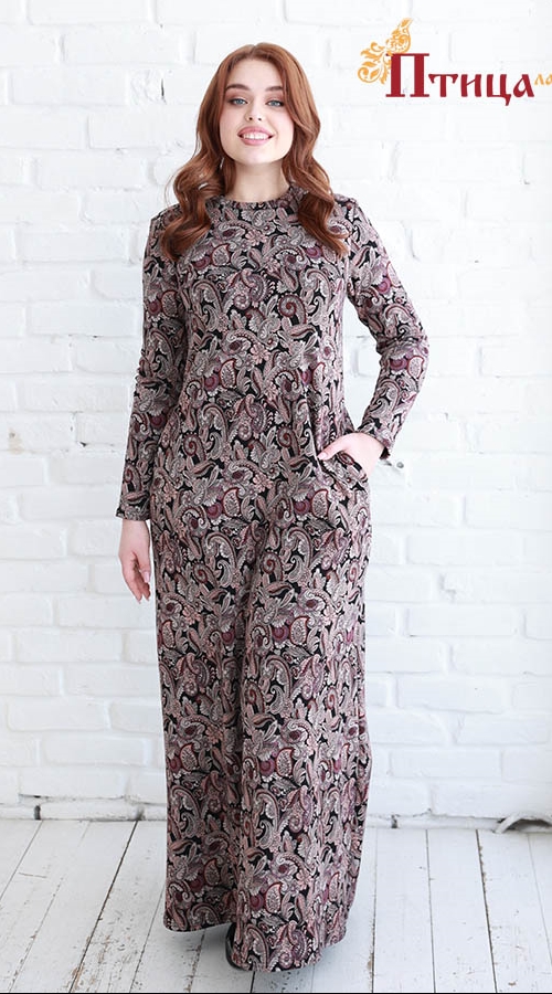Платье прямого силуэта, чуть расклешенного к низу с втачным рукавом. Длинное платье, карманы в боковых швах. Элегантный силуэт, данный образ прекрасно подходит как на выход, так и на каждый день. Данная модель...