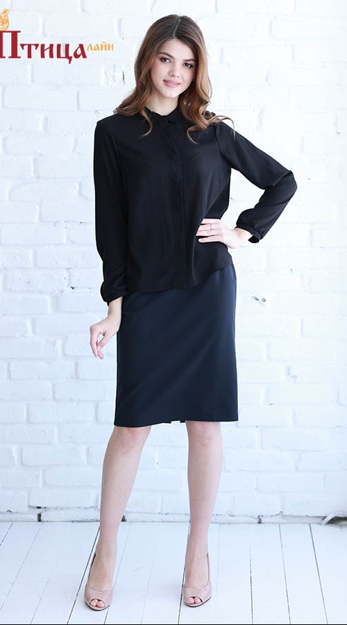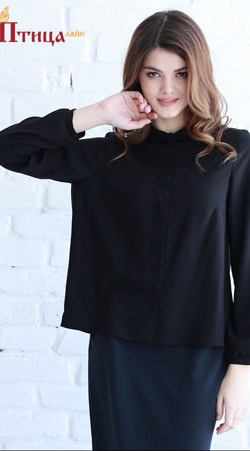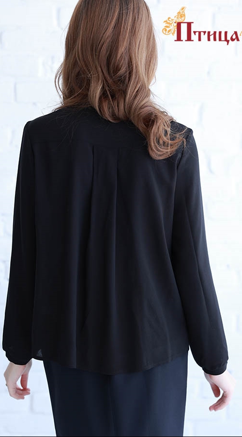 Блуза выполненная из штапеля, трапециевидного силуэта. Рукав втачной прямой, собранный на манжету. По центру полочки супатная застежка на пуговицы. По спинке кокетка, встречная глубокая складка по середине спин...