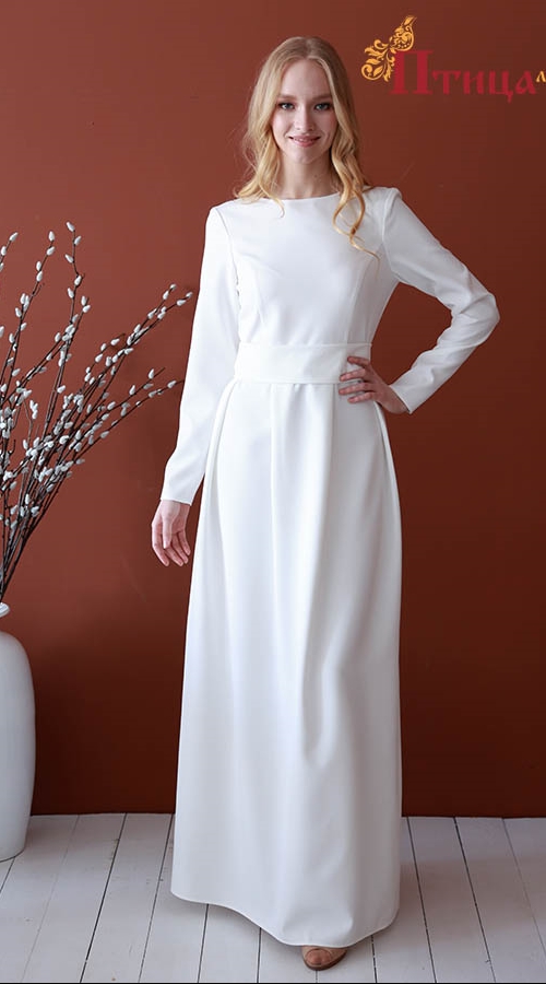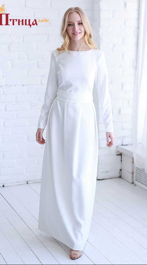 Платье женское отрезное по линии талии полуприлегающего силуэта, в комплект входит широкий пояс. Юбка "Татьянка" с глубокими складками. Рукав втачной прямой, длинный. Для удобства по среднему шву на спинке заст...