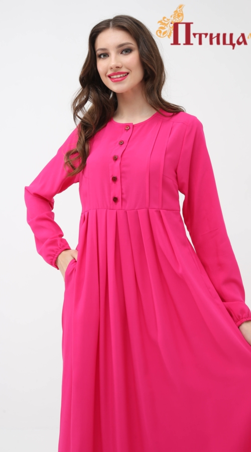 Платье с завышенной, отрезной линией талии. Модель с кокеткой по спинке и декоративной застрочкой по полочке, а карманы в боковых швах не оставят никого равнодушным. Юбка широкая с со складками по центу изде...