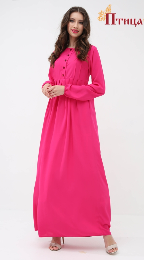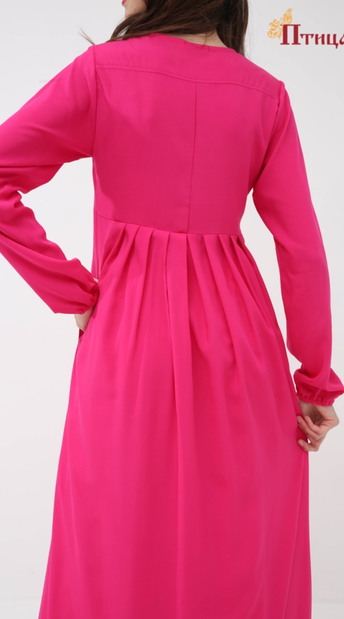 Платье с завышенной, отрезной линией талии. Модель с кокеткой по спинке и декоративной застрочкой по полочке, а карманы в боковых швах не оставят никого равнодушным. Юбка широкая с со складками по центу изде...