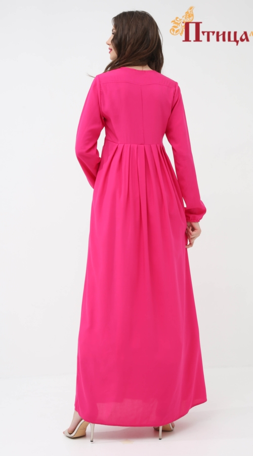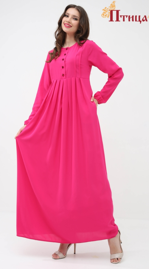 Платье с завышенной, отрезной линией талии. Модель с кокеткой по спинке и декоративной застрочкой по полочке, а карманы в боковых швах не оставят никого равнодушным. Юбка широкая с со складками по центу изде...