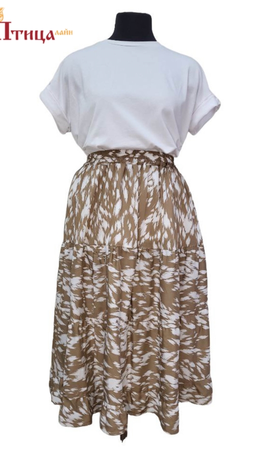 Юбка в 4 яруса, с шикарным расклешением, юбка с хорошим шагом. Оригинальный пояс, собранный на эластичную ленту, прекрасно подчеркивает талию, дополненое декоративными поясочками. Контраст фиксированной талии ...