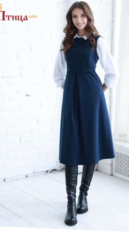 Теплый трикотажный сарафан за колено, с завышенной линией талии. Линия талии подчеркнута поясочком, юбка со встречной складкой создает женственный романтичный образ, позволяет носить данную модель каждой. По...