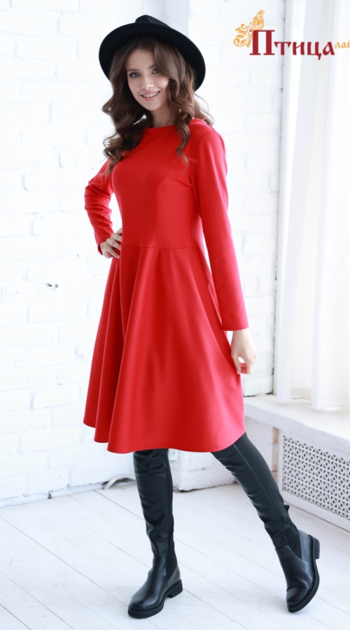 Теплое платье из трикотажа премиум-класса с юбкой полусолнце, длиной за линию колена. Платье идеально сидит по фигуре, дополняя образ как с обувью на низком каблуке, так и на высоком. Приталенный силуэт созд...