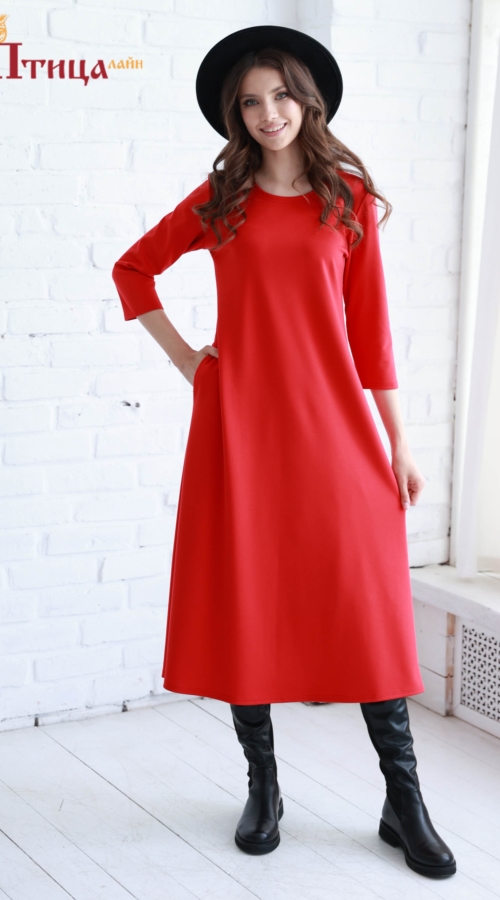 Платье трапециевидного силуэта, втачной рукав. Длина платья прекрасно смотрится как с обувью на низком каблуке, так и на высоком, карманы в боковых швах всегда удобны при повседневной носке. Элегантный силуэт, ...