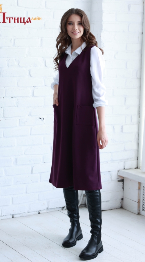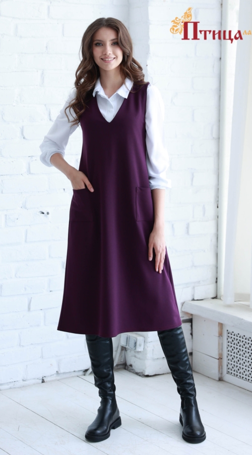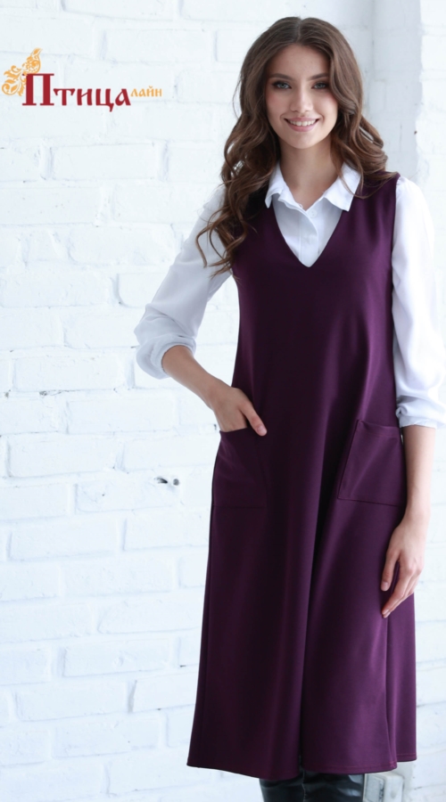 Сарафан трапециевидного силуэта, с настрочными карманами, всегда удобными для повседневной носки. Лаконичный, удобный, прекрасно сочетается с романтичными блузами, удобными водолазками. Длинна изделия хорошо см...