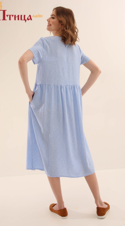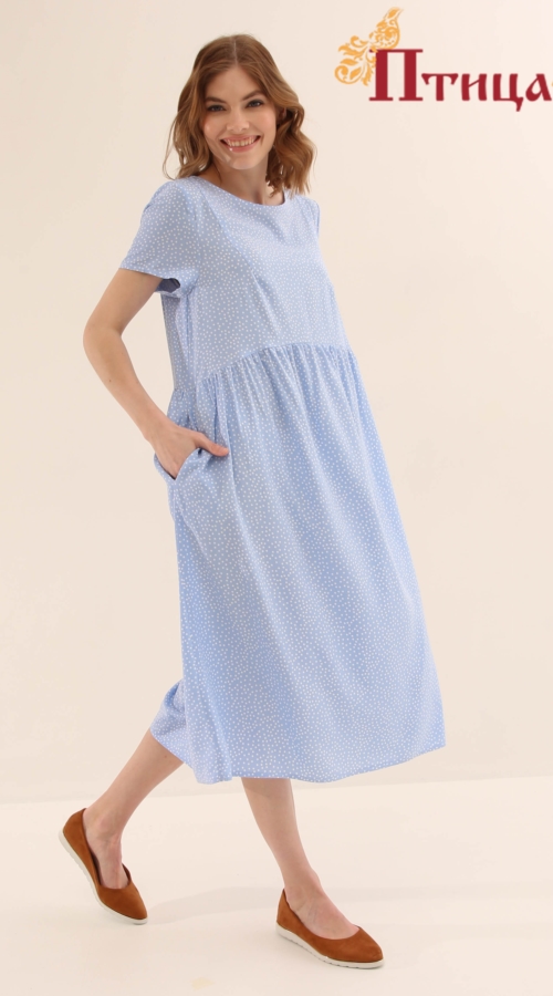 Платье женское отрезное с завышенной линией талии, линия талии по полочке находится под грудью, а по спинке на уровне талии, переход плавный и очень эфектный. Юбка прямая с карманами в боковом шве, равномерная...