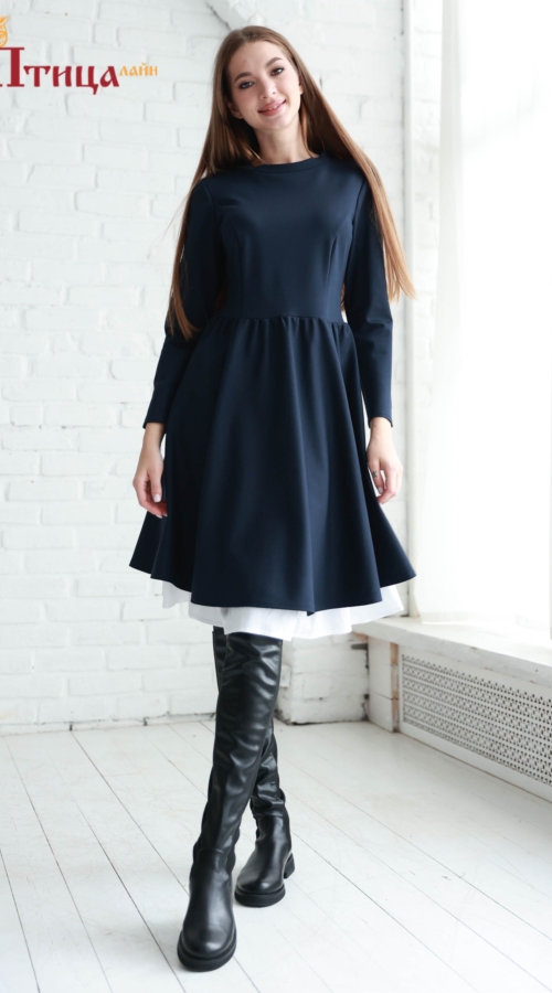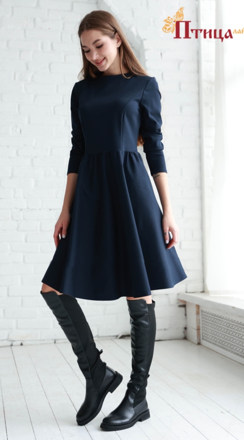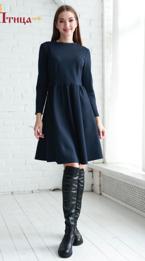 Теплое платье из трикотажа премиум класса с юбкой полусолнце, длиной за линию колена. Платье идеально сидит по фигуре, дополняя образ как с обувью на низком каблуке, так и на высоком. Приталенный силуэт созда...
