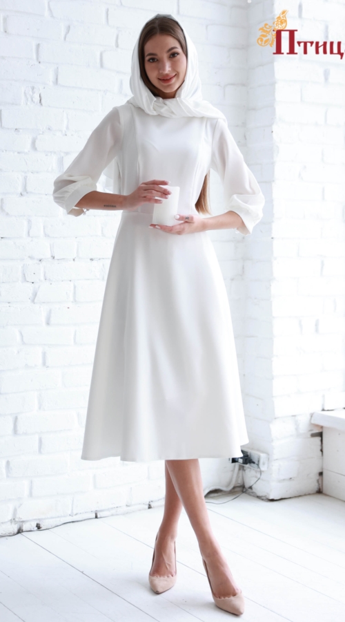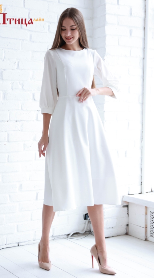 Романтичный, нежный образ: платье приталенного силуэта, с отрезной линией талии. Женственный силуэт достигается за счет рельефов по полочки и спинки, рукав выполнен из тонкого шифона длиной 3/4. Необыкновенной ...