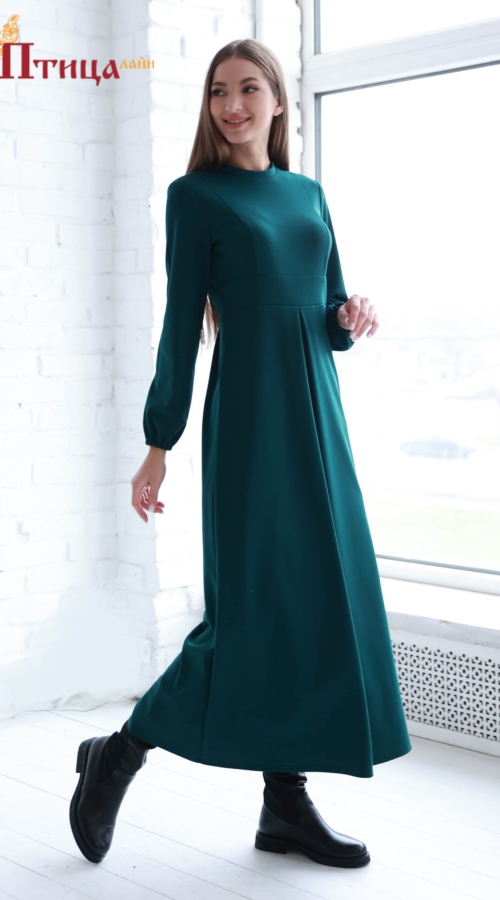 Платье отрезной по талии, линия талии завышенная. Юбка расклешенная к низу, по полочке встречная складка. Рельефы на полочке и спинке. По линии талии втачной пояс придает платью полуприлегающий силуэт. Украшени...