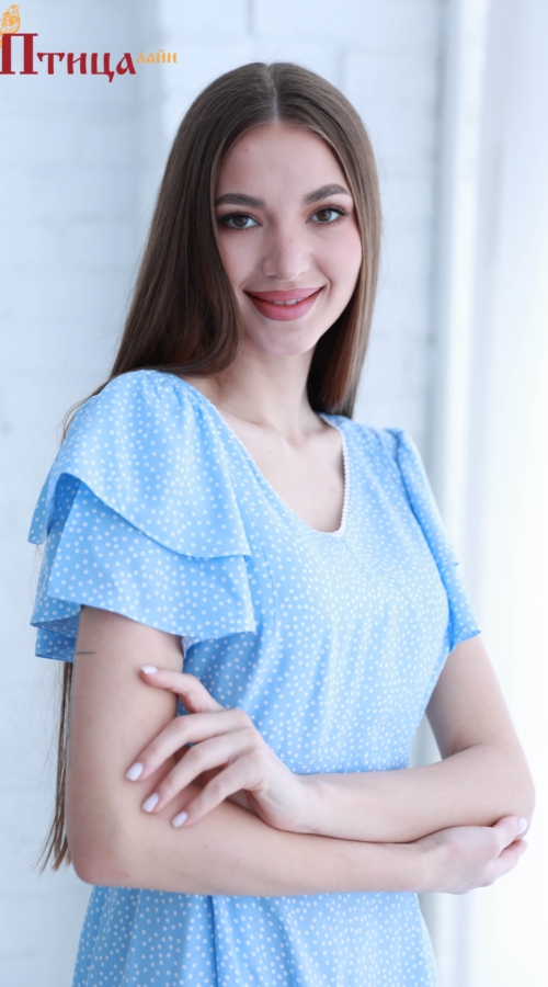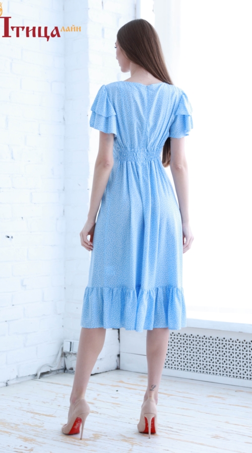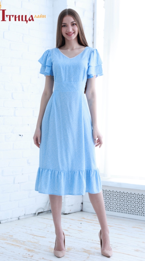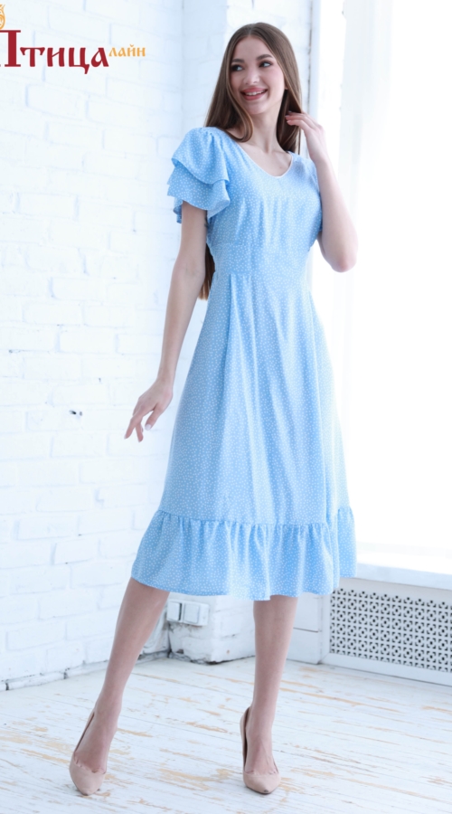 Платье женское, отрезное по талии, из нежнейшего штапеля. Линия талии завышенная, втачной пояс по спинке собран на эластичный спандекс, что улучшает посадку, не стесняя движений. Юбка расклешенная к низу, нижни...