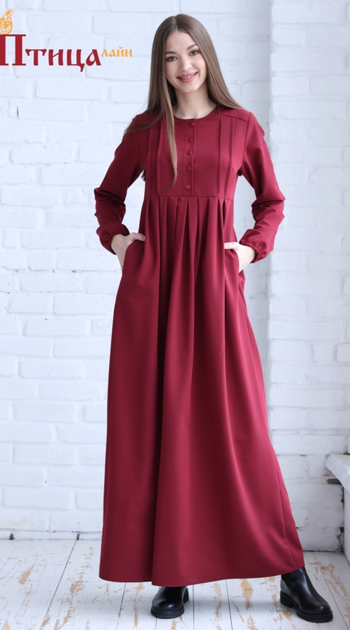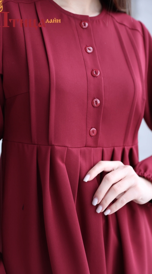 атье женское отрезное по талии, линия талии завышенная. Юбка широкая с со складками по центу изделия, по передней и задней части юбки, что создает дополнительную свободу в области талии и бедер. Рукав втачной, ...