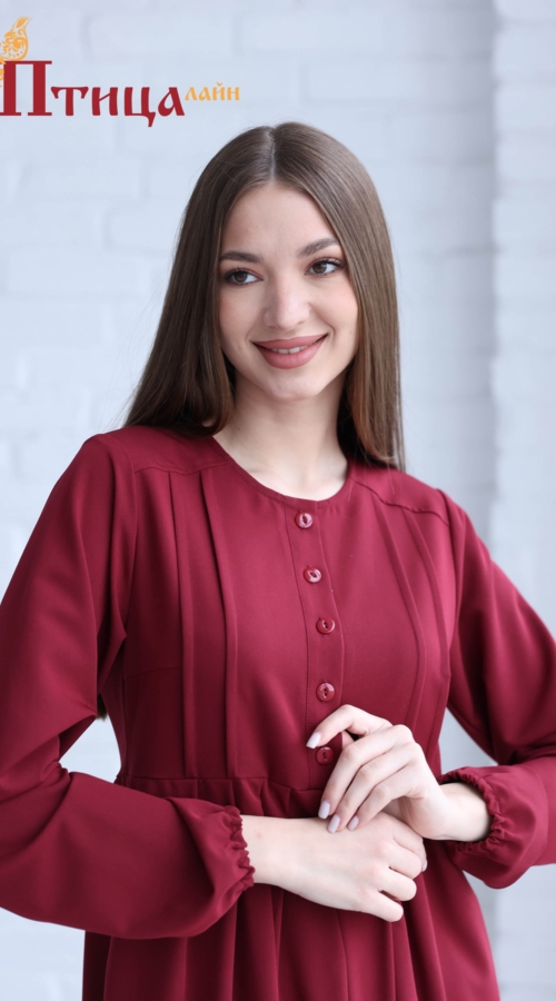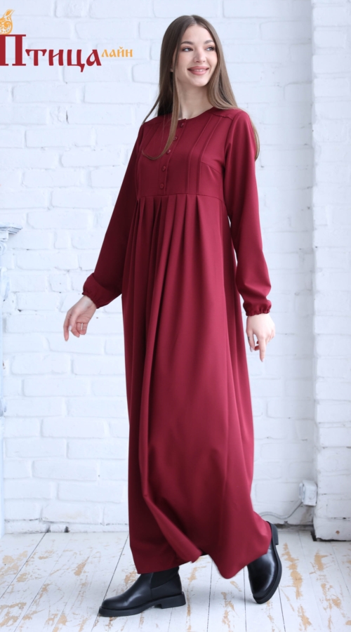 атье женское отрезное по талии, линия талии завышенная. Юбка широкая с со складками по центу изделия, по передней и задней части юбки, что создает дополнительную свободу в области талии и бедер. Рукав втачной, ...