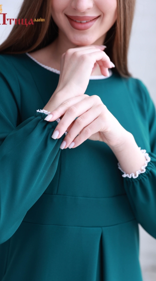 Нежный образ, приталенный силуэт, завышенная линия талии - более утонченного и идеального образа на венчание не возможно представить. Линия горловины и низ рукава украшен нежнейшим хлопковым, белым кружевом. Ю...