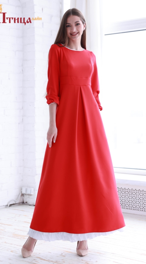 Нежный образ, приталенный силуэт, завышенная линия талии — более утонченного и идеального образа на венчание невозможно представить. Линия горловины и низ рукава украшен нежнейшим хлопковым белым кружевом. Юбка...