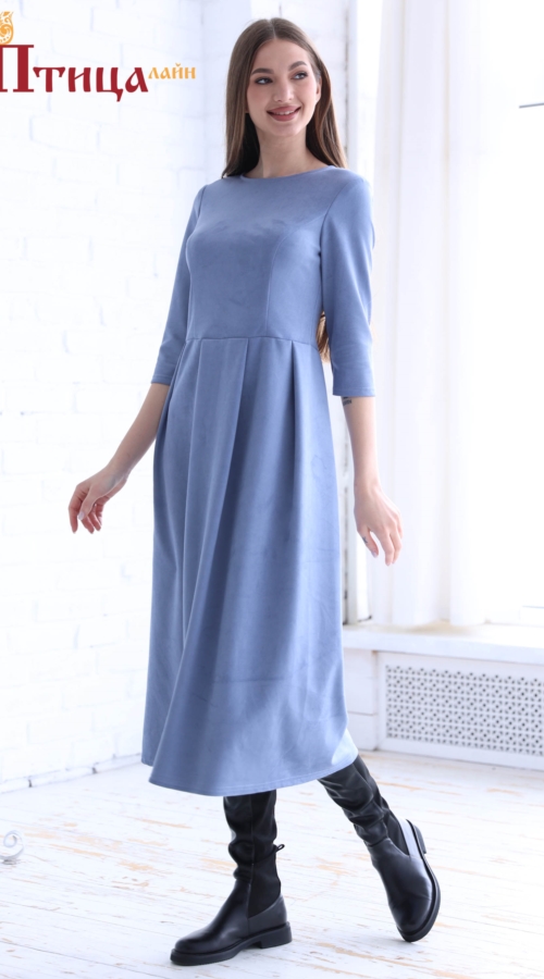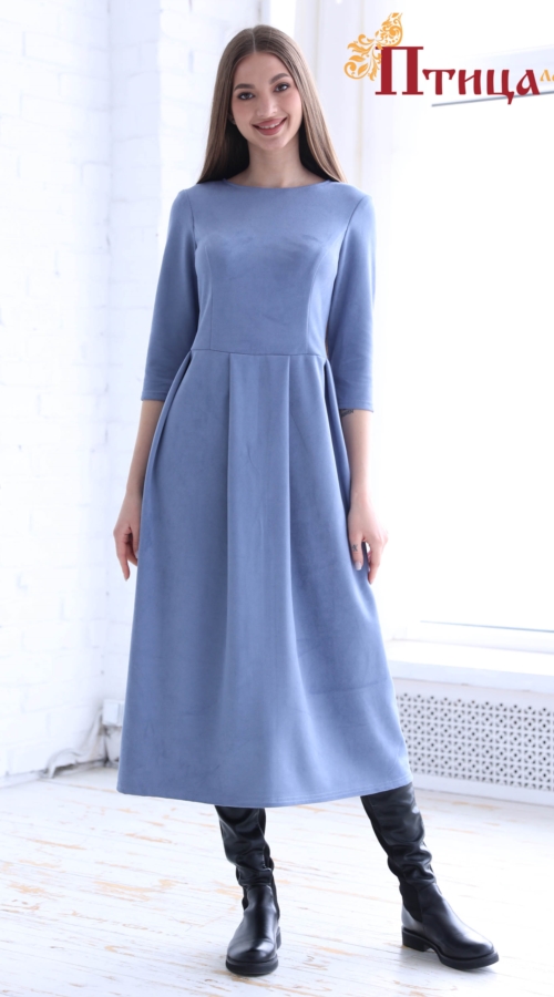 Платье отрезное по талии полуприлегающего силуэта. Юбка "Татьянка" с глубокими складками, имеет хороший шаг, но в то же время, не увеличивает объём на уровне бедер и линии талии. Рукав втачной прямой, зауженный...
