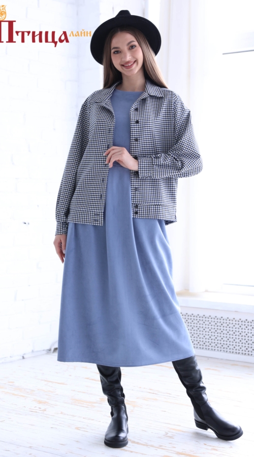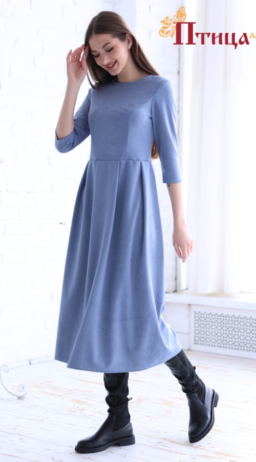 Платье отрезное по талии полуприлегающего силуэта. Юбка "Татьянка" с глубокими складками, имеет хороший шаг, но в то же время, не увеличивает объём на уровне бедер и линии талии. Рукав втачной прямой, зауженный...