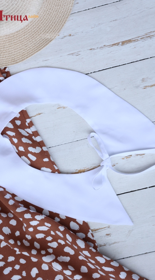 Самый женственный тренд - нежные воротнички, который прекрасно сочетается с каждым образом бренда "Птицалайн". Воротничек фиксируется завязочками. Материал: Штапель, дышащий легкий, приятый в носке на каждый день. Состав: 100% вискоза