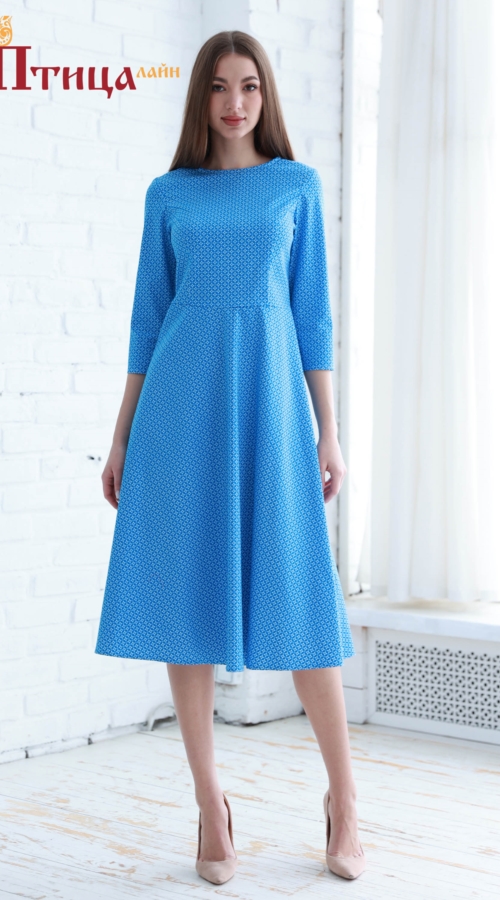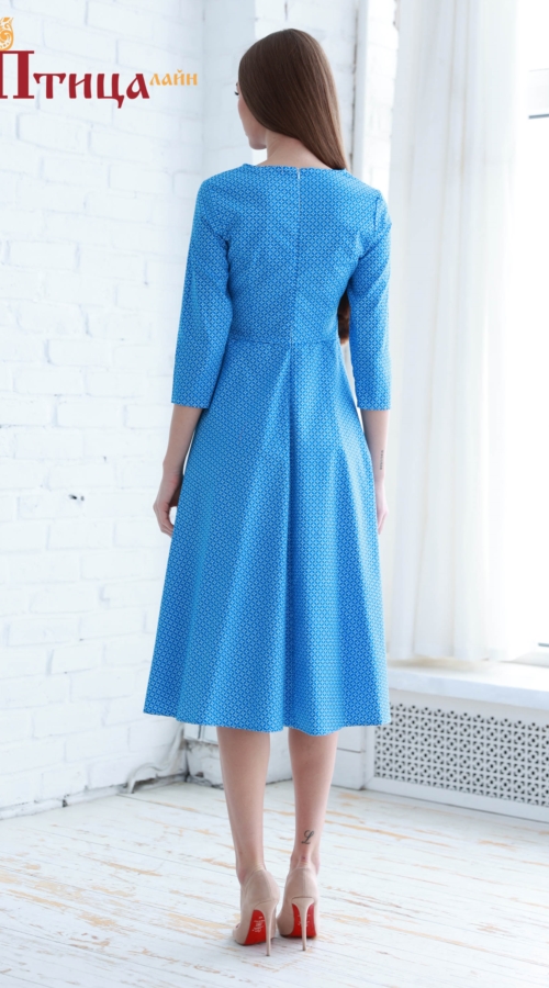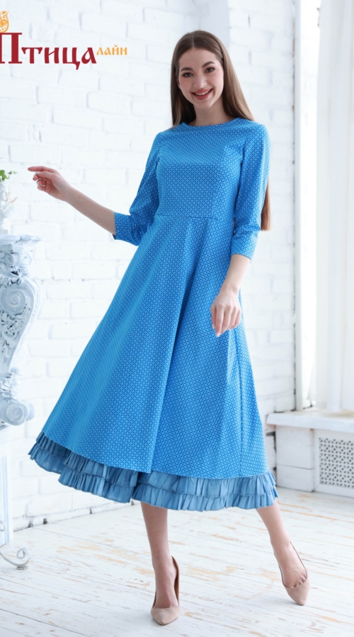 Романтичный образ: платье приталенного силуэта, с отрезной линией талии. Женственный силуэт достигается за счет рельефов по полочки и спинки, рукав зауженный длиной 3/4. Необыкновенной красоты юбка, с легкой сб...