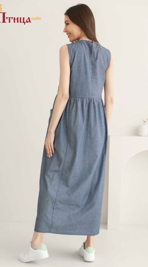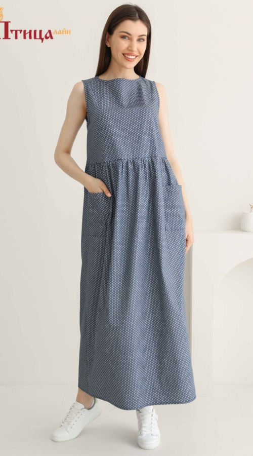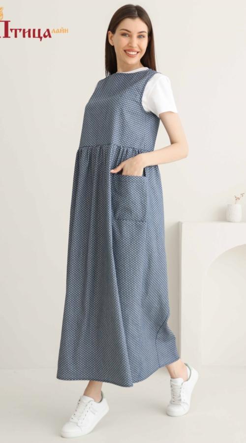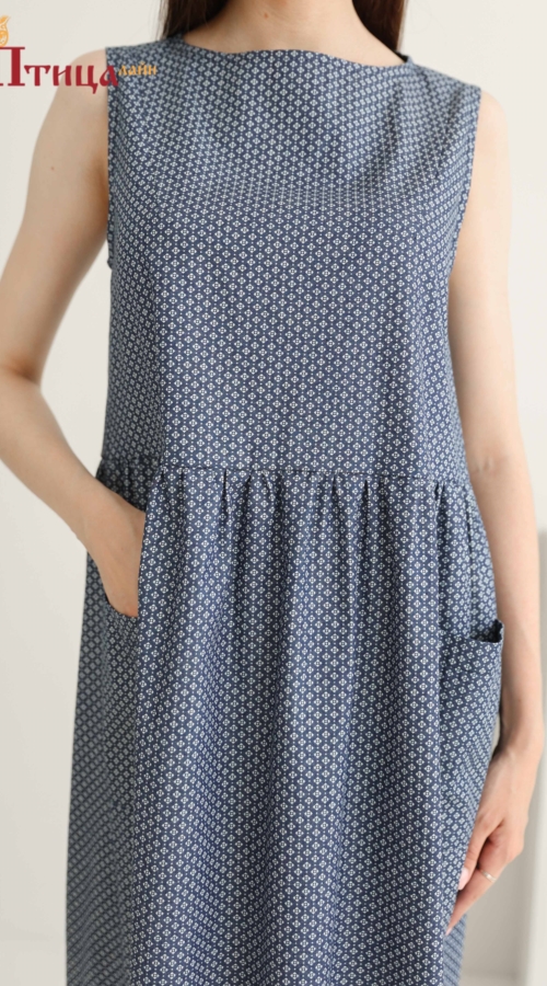Сарафан с отрезной, завышенной линией талии. Юбка широкая, прямая. Равномерная сборка по линии талии украшает данный лаконичный образ. Идеальную посадку дарит нагрудная выточка, выходящая из плечевого шва. ...