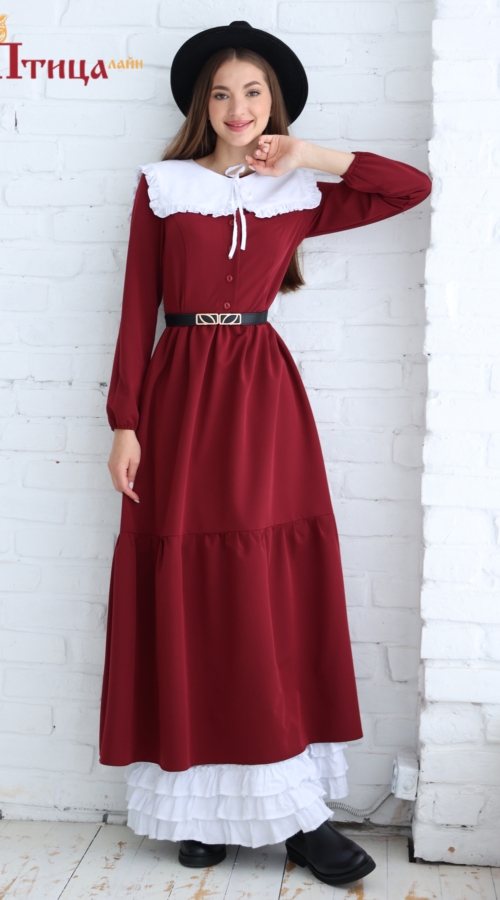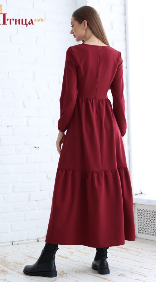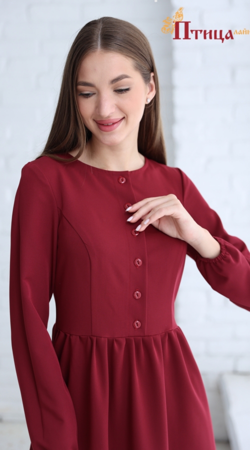 Платье женское отрезное по талии, полуприлегающего силуэта. Юбка расширенная к низу с легкой сборкой по талии, в два яруса на сборку. Рукав втачной, расширенный к низу на резиночке. Для удобства по среднему шву...