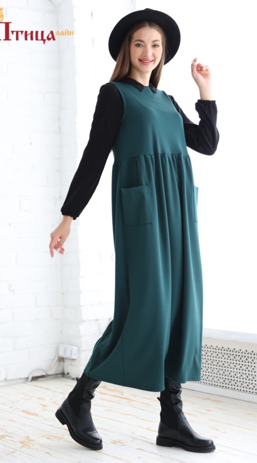 Сарафан с отрезной, завышенной линией талии. Юбка широкая, прямая. Равномерная сборка по линии талии украшает данный лаконичный образ. Идеальную посадку дарит нагрудная выточка, выходящая из плечевого шва. ...
