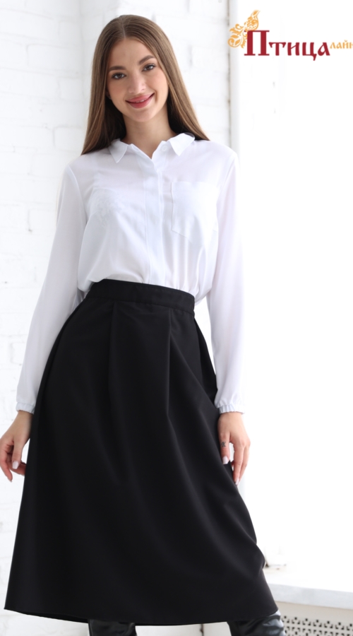 Юбка "Татьяна" с глубокими складками, юбка с хорошим шагом. За счет плательной ткани, юбка шикарно держит форму. Оригинальный пояс, двойной, с эластичной резинкой, прекрасно подчеркивает талию. Контраст фиксиро...